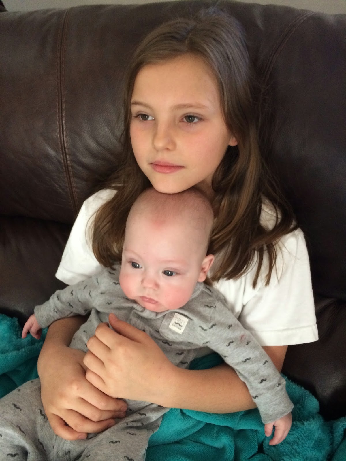 And here's one of all the cousins at Nina and Pop's house together for the first time! The boys are out of order because Josie didn't want to hold a baby so Emily is holding James instead!