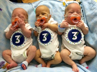 I can't believe it really but the triplets are 3 months old today! I guess time flies when you're having fun right? Our journey hasn't been "fun" every step of the way, but I can honestly say that I am enjoying our first few months now that they're not critically ill anymore. Can they really be that old though?! Am I going to say this every month?! I'm keeping my fingers crossed that we'll spend the 4 month birthday at home. We heard the "h" word today. For real! We are finally in a place where going home is within reach. (Still a few weeks away but it's huge that we're even thinking about it!)